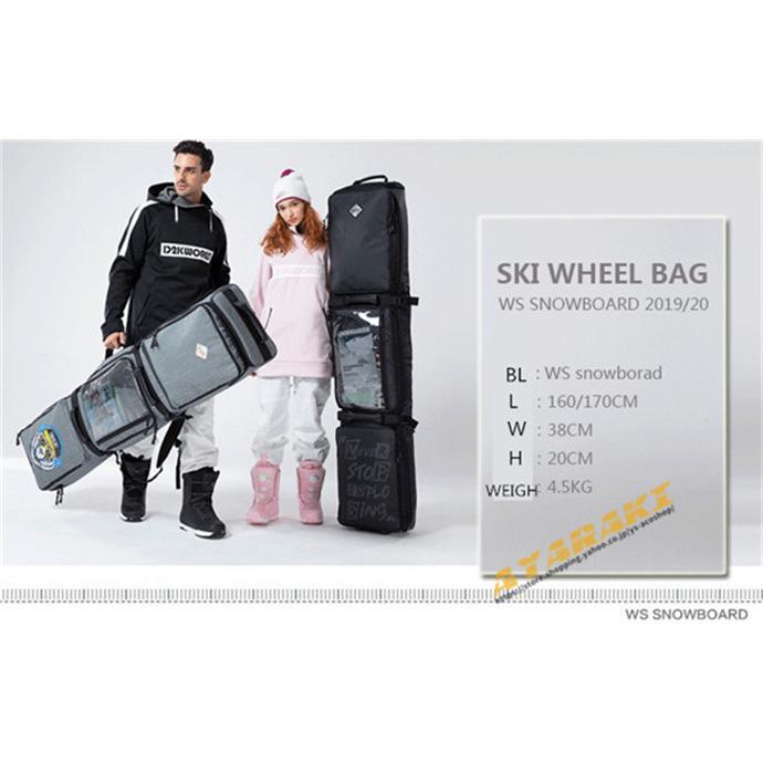 商品情報 [商品説明] 【4WAY仕様】ショルダー部分もパッド入りで肩へのストレスも軽減! フルオープン開閉で荷物も出し入れがラクラク! 大容量でブーツやウェアはもちろん小物類のたっぷり収納! 長距離の移動に便利なスタイル! ローラー付きのキャリースノーボードケースタイプ [サイズ] サイズ詳細を参照 [素材/材質] 600デニールオックスフォード |